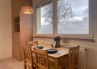 V bytě je také možné připojení k internetu. V rámci pronájmu jsou zahrnuty sklep, společný prostor pro kola a sušárna. Vynikající volba pro pár nebo menší rodinu, která chce bydlet v klidné části města s kompletní občanskou vybaveností a s centrem města do 5 minut autem.