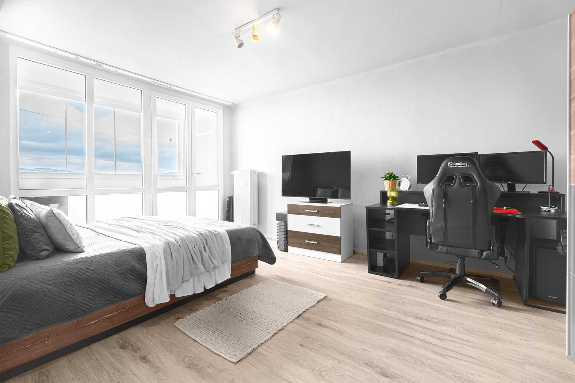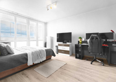 Pro maximální komfort je v bytě klimatizace a venkovní žaluzie, které zajistí příjemné prostředí po celý rok.